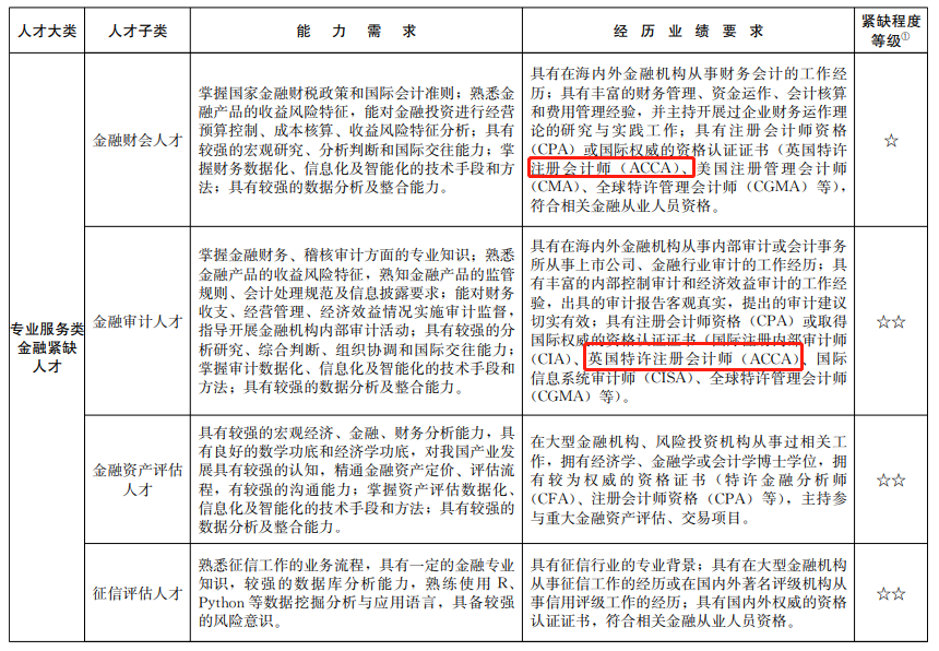 總結(jié)來(lái)說(shuō),具有在海內(nèi)外金融機(jī)構(gòu)從事財(cái)務(wù)會(huì)計(jì)的工作經(jīng)歷;具有豐富的財(cái)務(wù)管理、資金運(yùn)作、會(huì)計(jì)核算和費(fèi)用管理經(jīng)驗(yàn),并主持開展過(guò)企業(yè)財(cái)務(wù)運(yùn)作理論的研究與實(shí)踐工作;具有國(guó)際權(quán)威的資格認(rèn)證證書(ACCA英國(guó)國(guó)際注冊(cè)會(huì)計(jì)師等),符合相關(guān)金融從業(yè)人員資格。對(duì)符合目錄要求的金融人才,將享受: