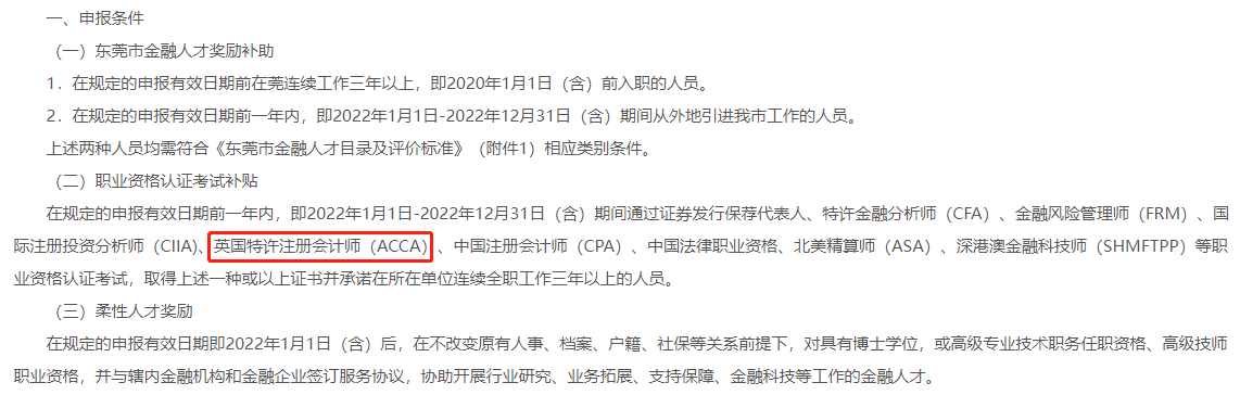 ACCA被列入東莞市金融人才獎(jiǎng)勵(lì)名單!注意!