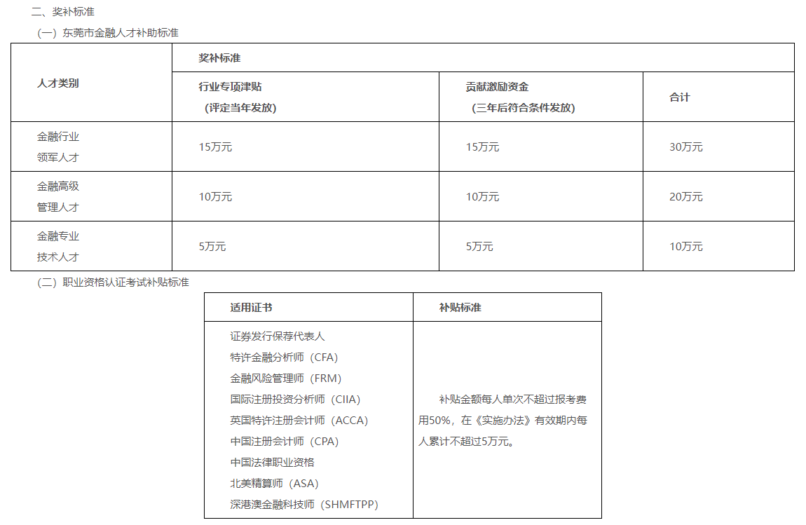 近日,東莞市金融工作局印發(fā)《東莞市加強(qiáng)金融人才隊(duì)伍建設(shè)的實(shí)施辦法(試行)試行》有關(guān)獎(jiǎng)補(bǔ)資金申報(bào)指南(2023年)。文件中英國(guó)特許注冊(cè)會(huì)計(jì)師(acca)被列入職業(yè)資格認(rèn)證考試補(bǔ)貼。補(bǔ)貼金額每人單次不超過(guò)報(bào)考費(fèi)用50%,在《實(shí)施辦法》有效期內(nèi)每人累計(jì)不超過(guò)5萬(wàn)元。具體通知內(nèi)容如下: