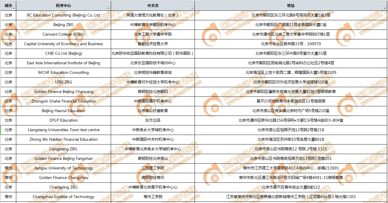 以下為2020年ACCA考試地點(diǎn),2021年考試地點(diǎn)還未發(fā)布,具體考試地點(diǎn)以官方發(fā)布/準(zhǔn)考證為準(zhǔn)。