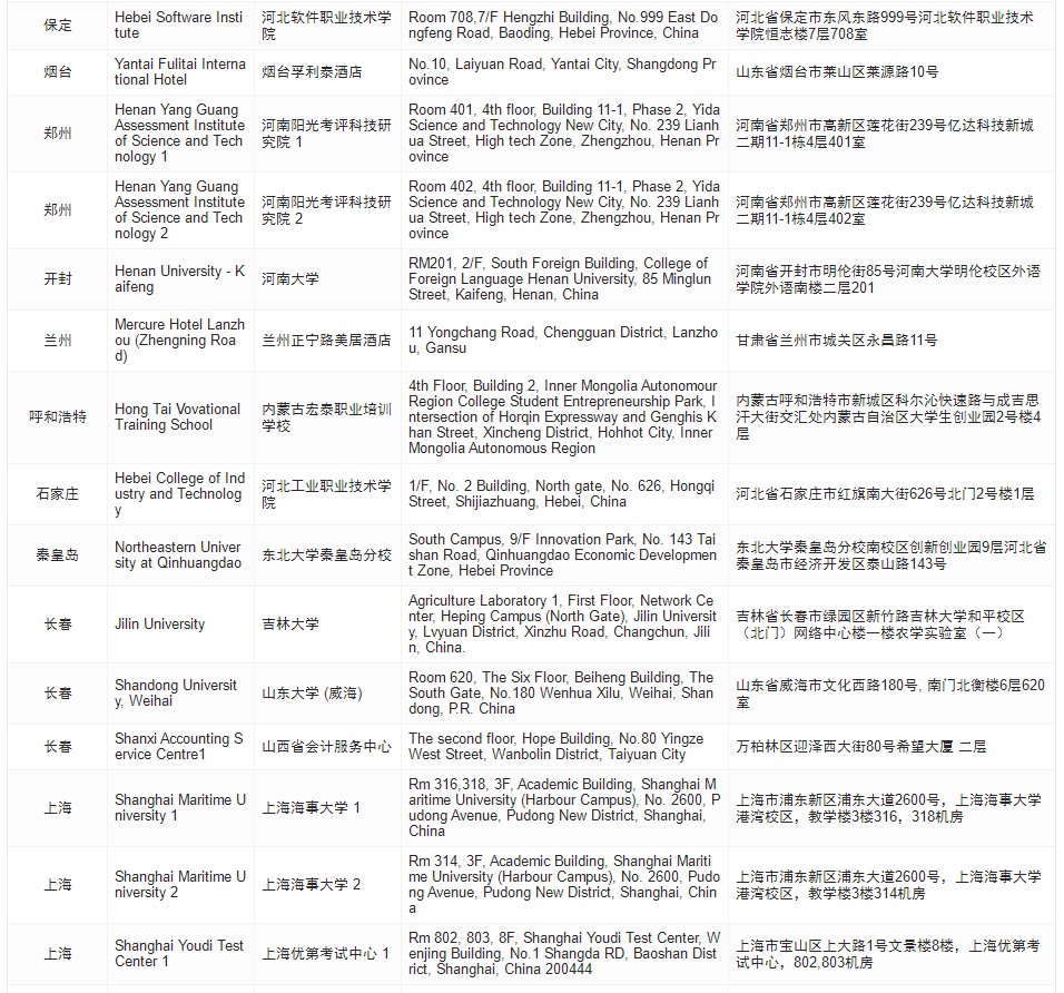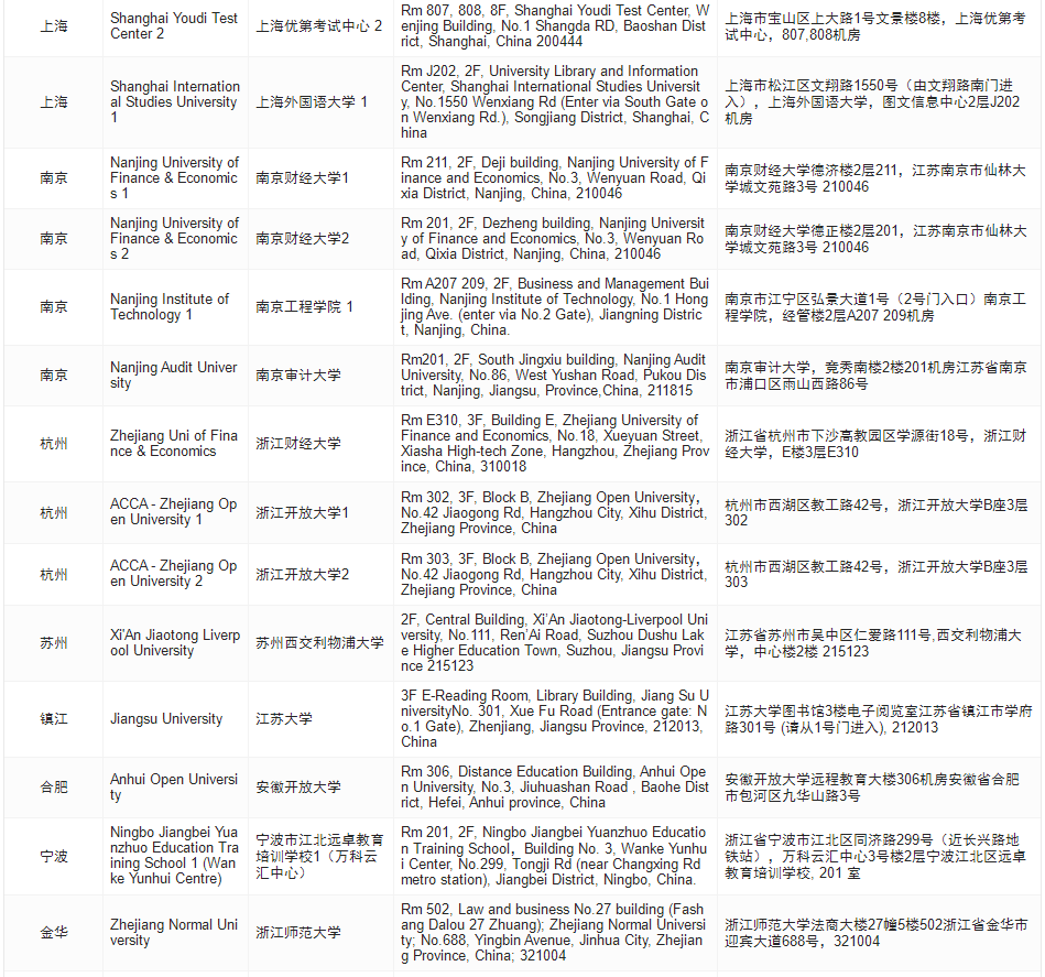 考生必看!2024年6月acca考點(diǎn)地址匯總