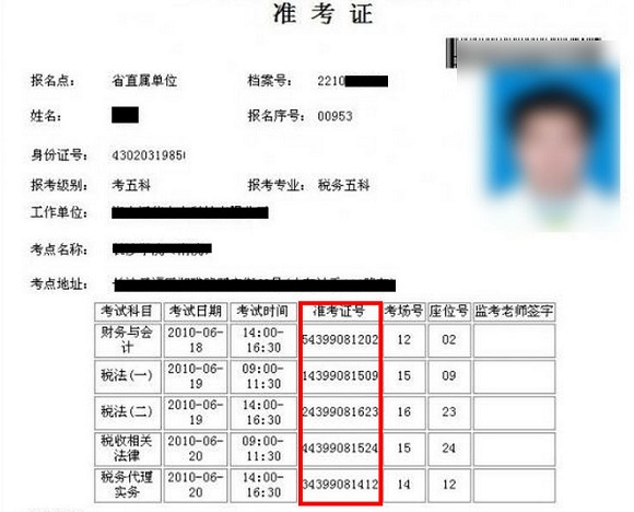 原注冊稅務(wù)師準(zhǔn)考證樣式: