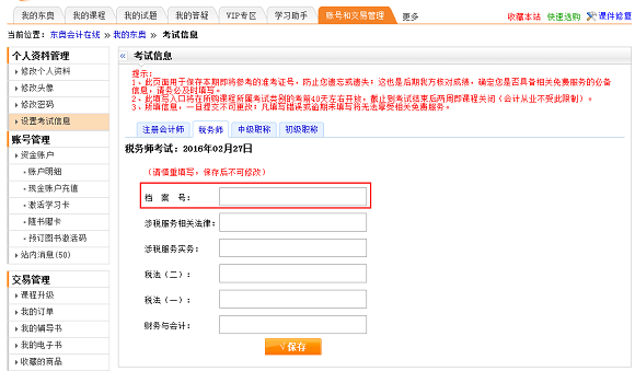 因此東奧會(huì)計(jì)在線對東奧學(xué)員的稅務(wù)師考試信息中檔案號做出如下變更:學(xué)員由原來的檔案號變更為準(zhǔn)考證號,準(zhǔn)考證號成為學(xué)員唯一的身份識別號,不再使用檔案號。(具體變更內(nèi)容如圖所示)