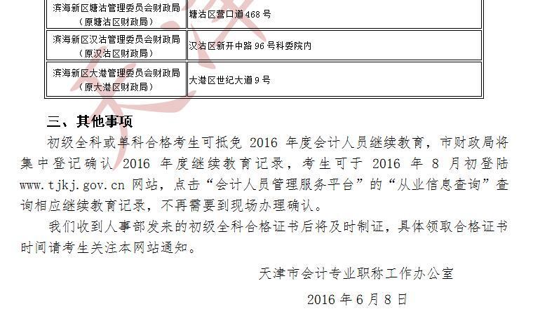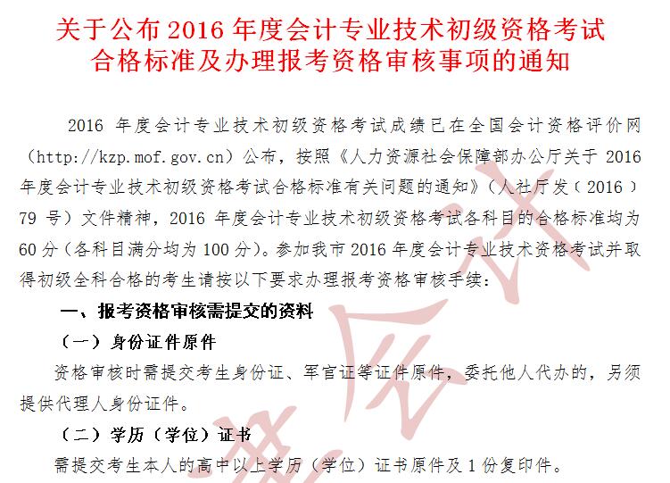 關于公布2016年度會計專業(yè)技術初級資格考試合格標準及辦理報考資格審核事項的通知