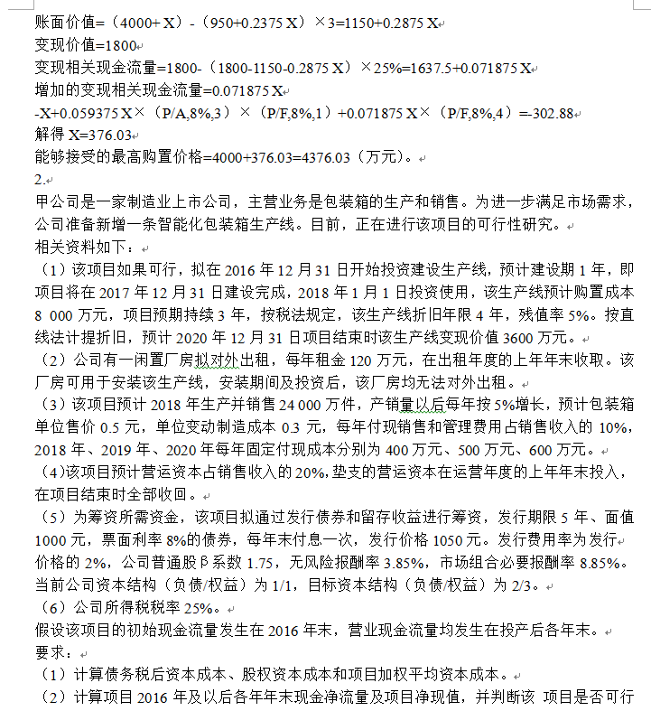 2016年注冊會計師《財管》考試真題及參考答案(考生回憶版)