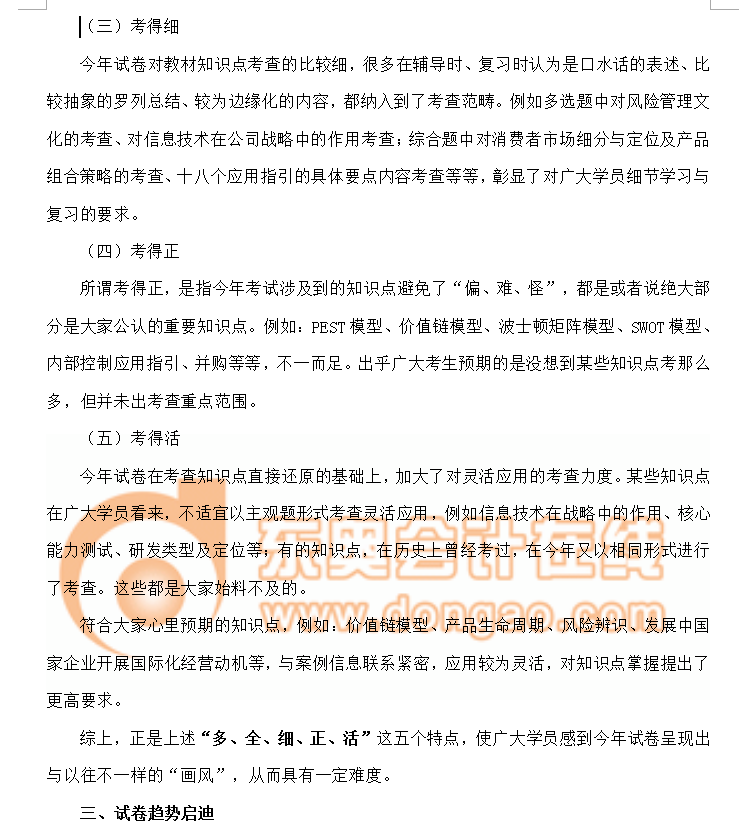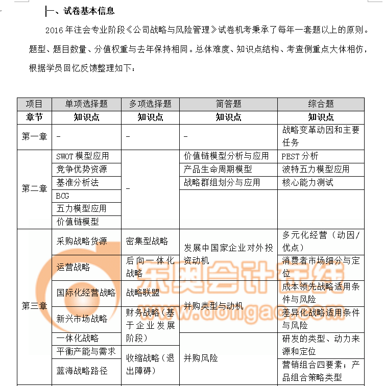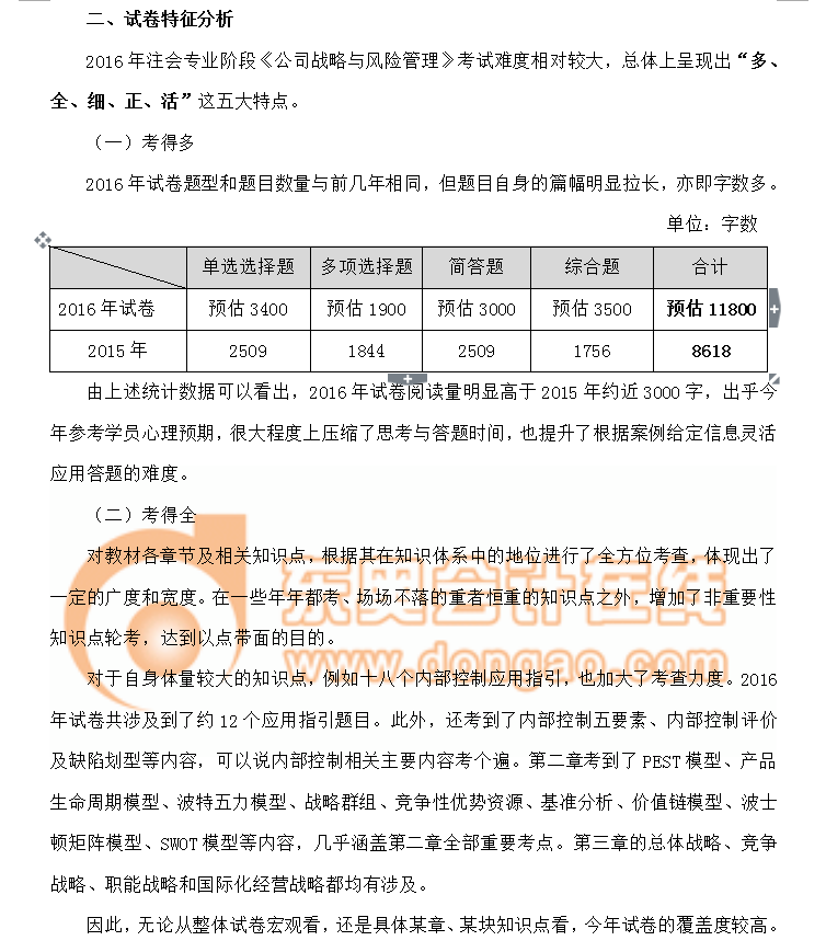 2016年注會專業(yè)階段《公司戰(zhàn)略與風(fēng)險管理》考試總的來說難度不小,一改近三年來的出題風(fēng)格,是開啟今后一段時期新的考查風(fēng)格的具有里程碑標(biāo)志意義的試卷,有很強的現(xiàn)實借鑒意義。作為2017年該科復(fù)習(xí)備考系列文章之一,下面對2016年《公司戰(zhàn)略與風(fēng)險管理》試卷進行詳細解讀。