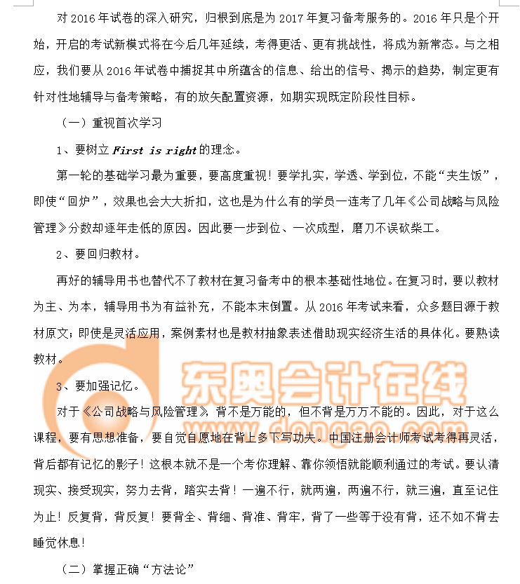 以銅為鏡,可以正衣冠;以史為鏡,可以知興替。以歷史試卷為參照,可以捕捉趨勢。因此,在開始新的注會備考征程之前,很有必要對歷史考題,特別是2016年的試卷進行深入、透徹的解析。這么做的目的并不是希望藉此去預(yù)測明年會考什么、不考什么;而是要據(jù)此去把握考試的大勢,這比一城一地的得失、某個具體知識點的押題來得更為重要!這是方向性的大問題!