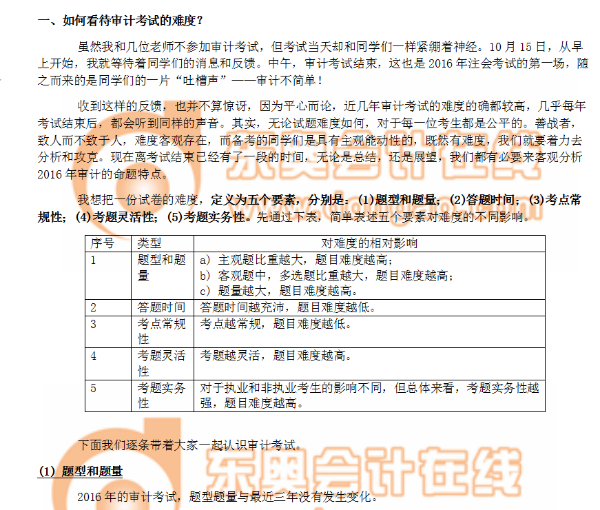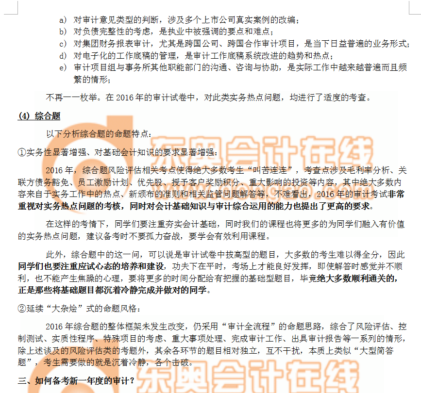 2016年注冊(cè)會(huì)計(jì)師考試《審計(jì)》考情分析