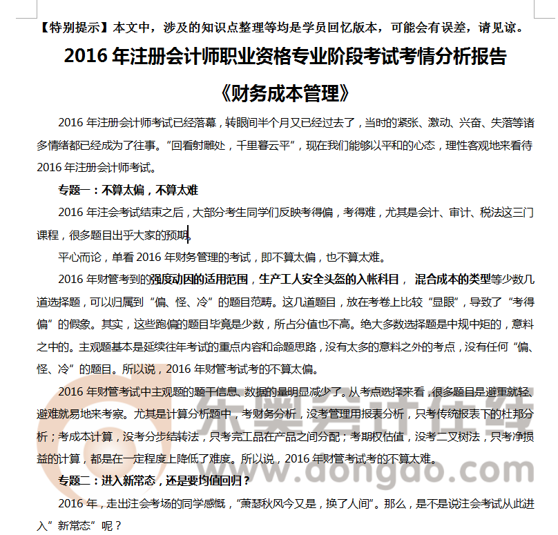 2016年注冊(cè)會(huì)計(jì)師《財(cái)務(wù)成本管理》考情分析