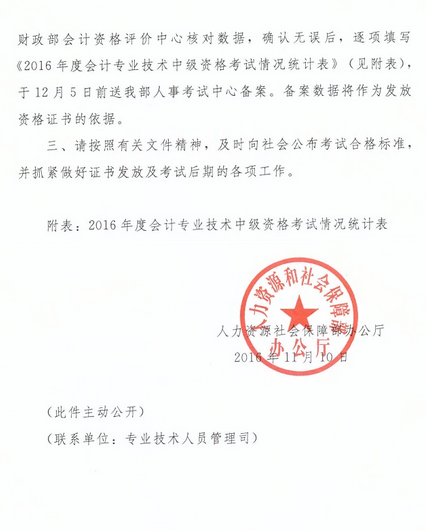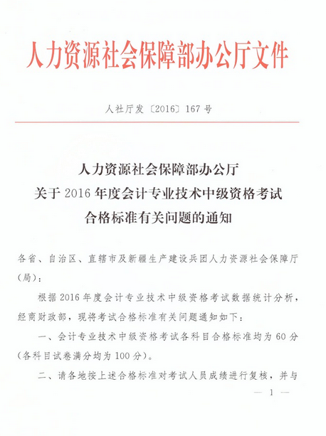 關(guān)于2016年度會(huì)計(jì)專業(yè)技術(shù)中級資格考試合格標(biāo)準(zhǔn)有關(guān)問題的通知