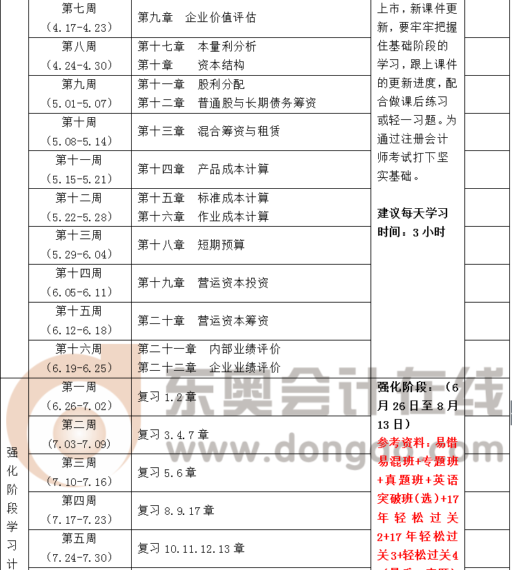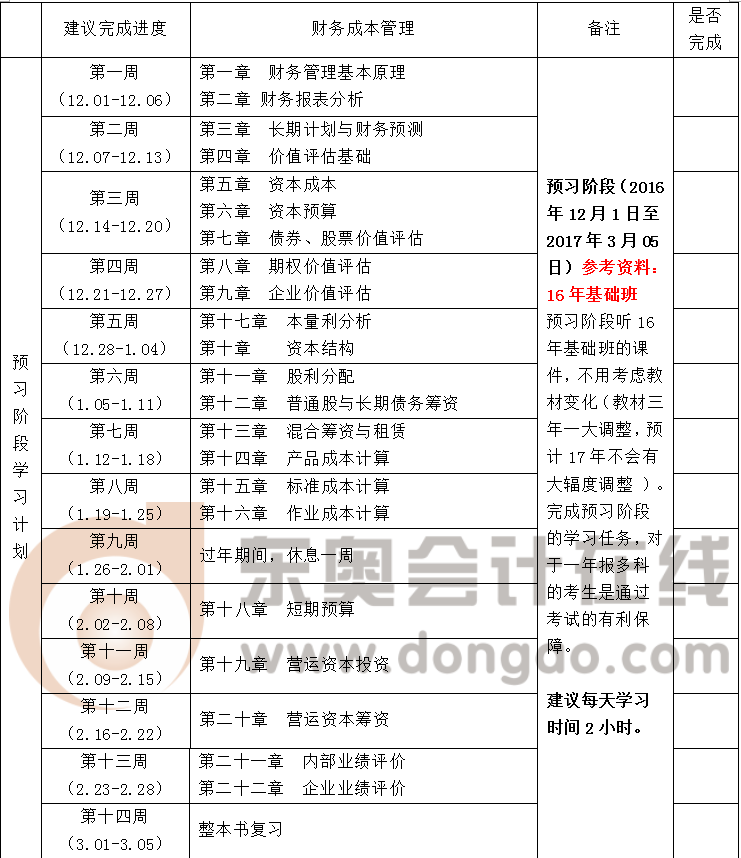 2017年注冊會計師考試《財務(wù)成本管理》學(xué)習(xí)計劃