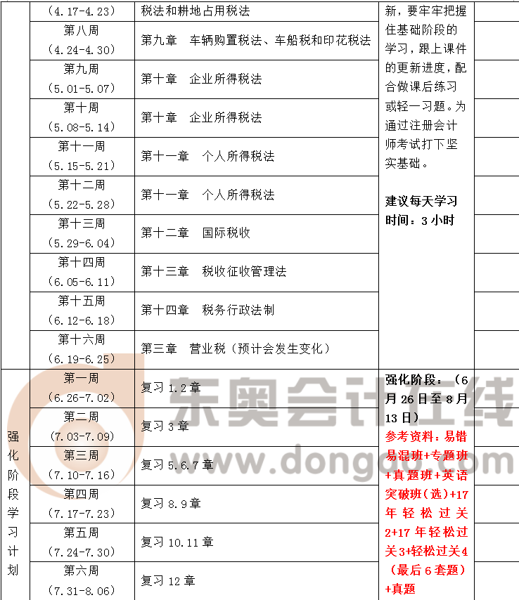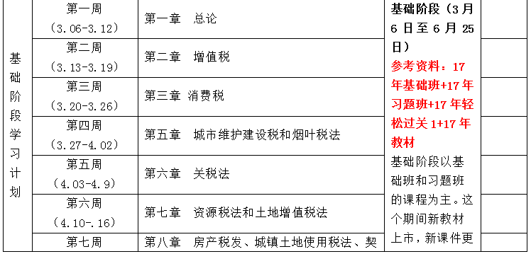 2017年注冊(cè)會(huì)計(jì)師考試《稅法》學(xué)習(xí)計(jì)劃