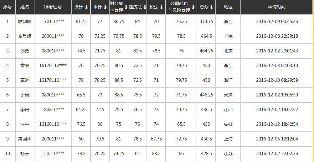 2016年注冊(cè)會(huì)計(jì)師報(bào)分榜>>>