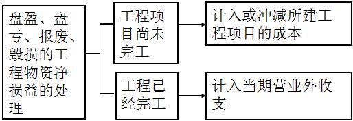 盤盈、盤虧、報廢、毀損的工程物資凈損益的會計處理如下圖所示: