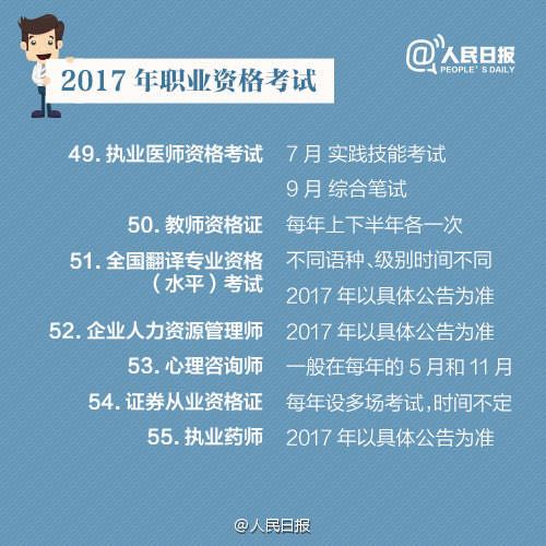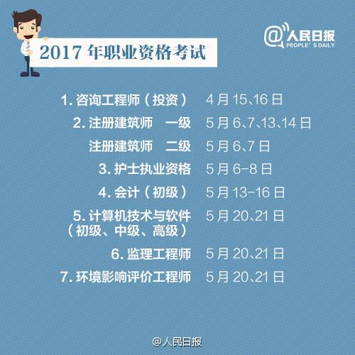 2017年職業(yè)資格考試安排 讓你升職加薪