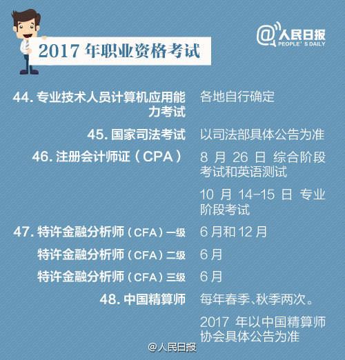 全國司法廳長會議透露,2017年將是國家司法考試的最后一年!除了司法考試之外,還有哪些含金量較高的職業(yè)資格考試?它們關系著你的晉升、工資等,都是什么時候考?注會考試是什么時候?戳圖↓↓2017年55項考試時間表。趕緊準備起來吧!