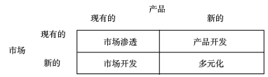 密集型戰(zhàn)略,也稱為加強型成長戰(zhàn)略,是指企業(yè)充分利用現(xiàn)有產品或服務的潛力,強化現(xiàn)有產品或服務競爭地位的戰(zhàn)略。密集型成長戰(zhàn)略主要包括三種類型:市場滲透戰(zhàn)略、市場開發(fā)戰(zhàn)略和產品開發(fā)戰(zhàn)略。密集型成長戰(zhàn)略可以通過安索夫矩陣表示,如下圖所示: