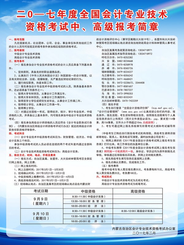 2017年內(nèi)蒙古中級(jí)會(huì)計(jì)職稱報(bào)名簡(jiǎn)章
