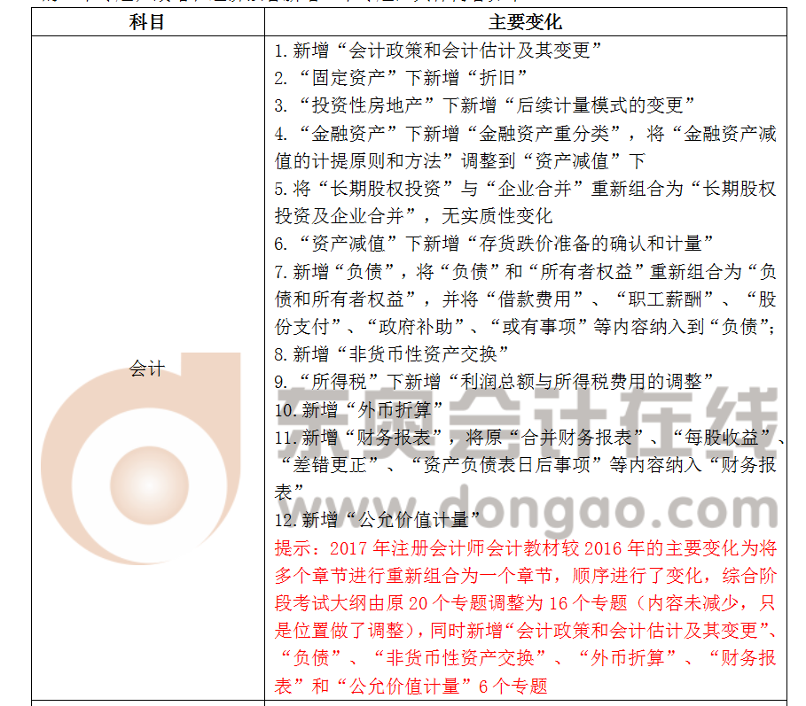 2017年度注冊會計師全國統(tǒng)一考試大綱公布,其中注會綜合階段大綱有一些變化,針對這些變化,東奧會計在線逐一為您進(jìn)行解讀分析。