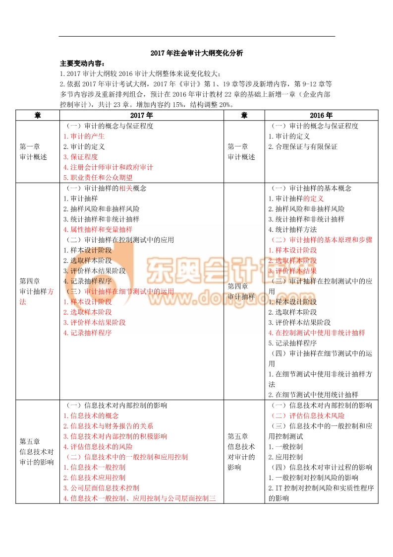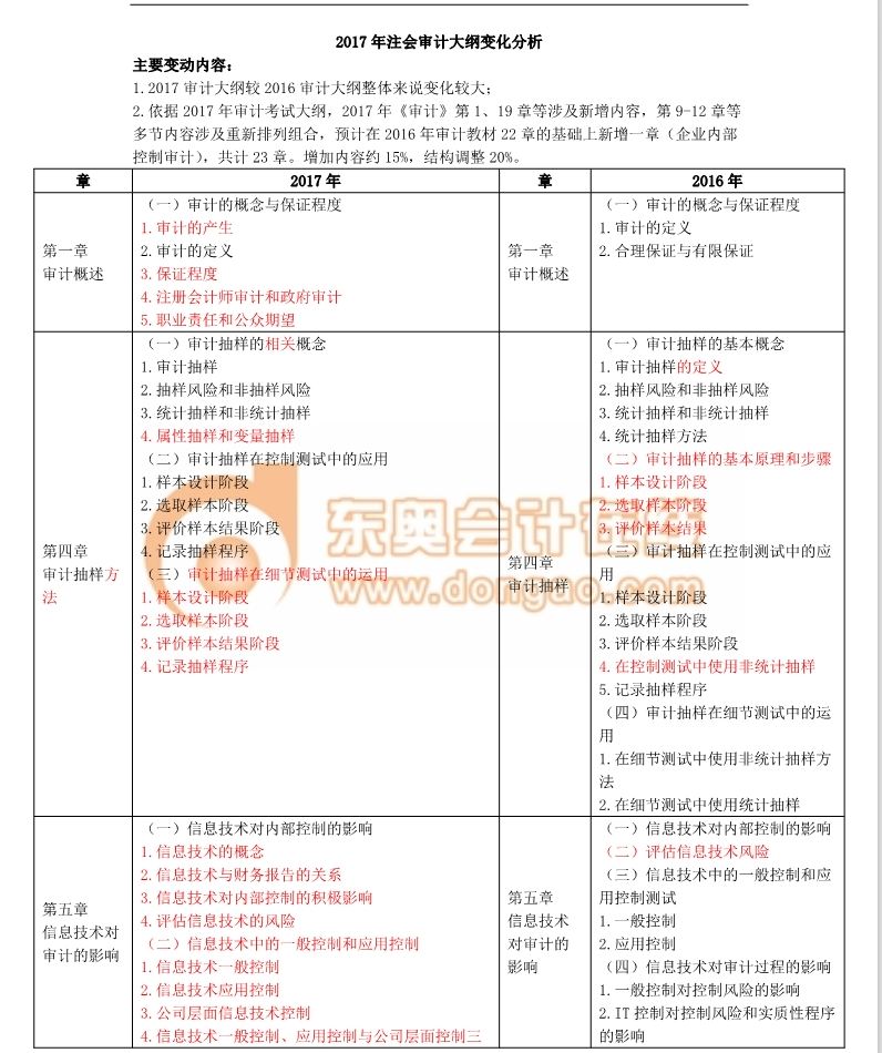 2017年注冊會計(jì)師考試大綱已經(jīng)公布,東奧老師對2017年與2016年注會《審計(jì)》考試大綱變化進(jìn)行了對比分析,希望大家及時(shí)了解注會大綱變化情況。