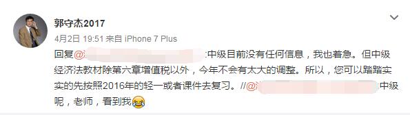 中級會計職稱郭守杰老師微博回復(fù)
