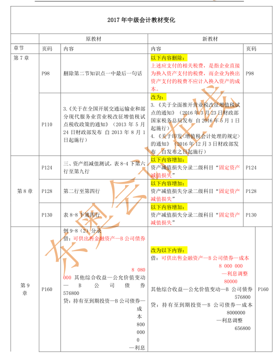 2017年中級會計職稱教材已經(jīng)正式上市了,教材變化也已整理完整。看過中級經(jīng)濟法的教材變化后,考生們很開心,因為變化不大。再告訴大家一個好消息,中級會計實務(wù)的教材變化也出來了,你們猜變化大嗎?