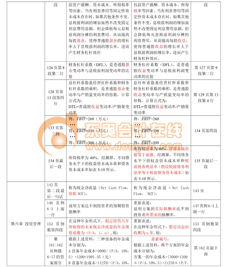 2017年中級(jí)財(cái)管教材變化對(duì)比: