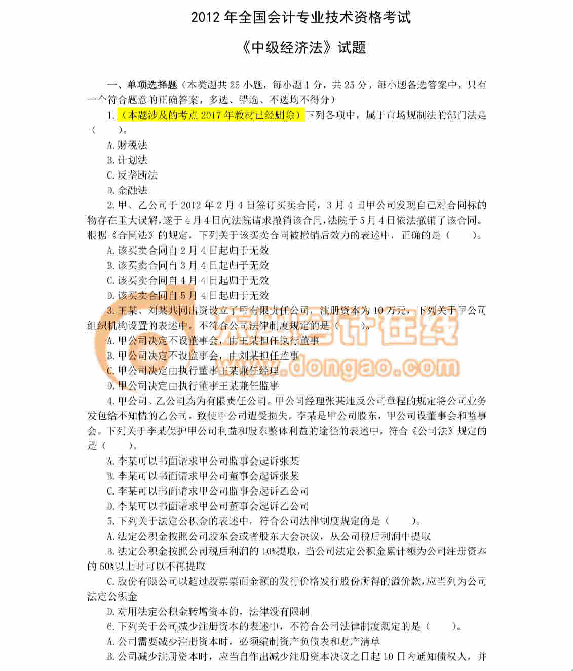 真題詳情點(diǎn)擊下載:2012年全國會計專業(yè)技術(shù)資格考試(經(jīng)濟(jì)法、稅法部分確認(rèn)后)