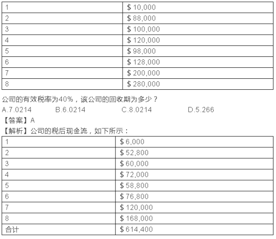 根據(jù)上表可知:公司可在第八年將全部的資金收回,前七年的稅后現(xiàn)金流=$446 400,
