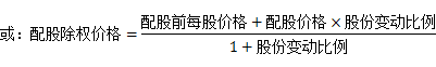 通常配股股權(quán)登記日后要對(duì)股票進(jìn)行除權(quán)處理。除權(quán)后股票的理論除權(quán)基準(zhǔn)價(jià)格為: