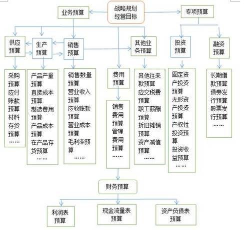 全面預(yù)算通常由業(yè)務(wù)預(yù)算(即經(jīng)營預(yù)算)、專項預(yù)算(即投融資預(yù)算)和財務(wù)預(yù)算三部分組成。