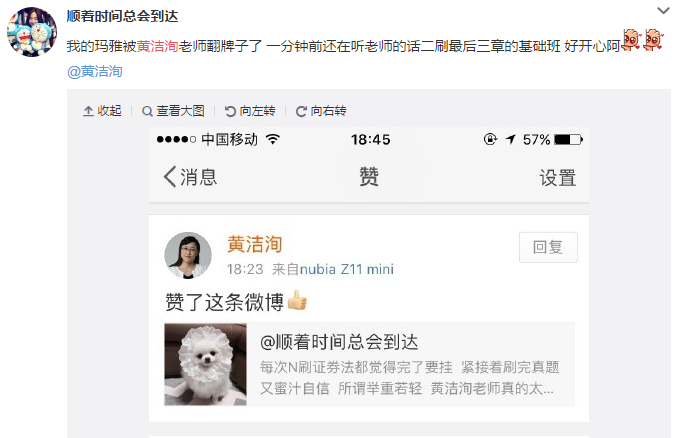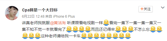 除了日常授課,黃潔洵老師還經(jīng)常在微博上與學(xué)員互動,解答學(xué)員關(guān)于課程、考試、學(xué)習(xí)的問題,那么認(rèn)真負(fù)責(zé),愛崗敬業(yè)的黃老師讓人不得不服。