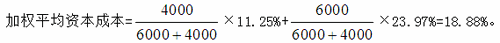 【答案解析】本題的主要考核點(diǎn)是加權(quán)平均資本成本的計(jì)算。股權(quán)資本成本=11%+1.41×9.2%=23.97%