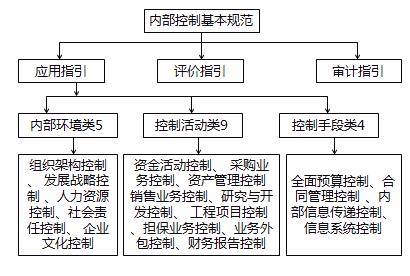 我國企業(yè)內(nèi)部控制規(guī)范體系是由《基本規(guī)范》及其《配套指引》構(gòu)成,《基本規(guī)范》在我國企業(yè)內(nèi)部控制規(guī)范體系中處于最高層次起統(tǒng)馭作用,確立了企業(yè)建立與實施內(nèi)部控制必須建立的框架結(jié)構(gòu),規(guī)定了內(nèi)部控制的目標(biāo)、原則、要素等基本要求,是制定《應(yīng)用指引》、《評價指引》和《審計指引》的基本依據(jù)。