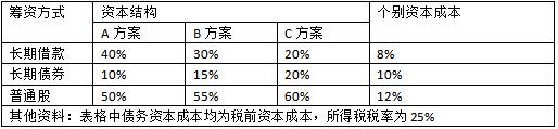 (3)會(huì)議決定在“一帶一路”沿線國(guó)家中加大國(guó)外投資,與外商企業(yè)乙公司協(xié)商,雙方合資設(shè)立合營(yíng)企業(yè):丙公司。根據(jù)有關(guān)信息,丙公司籌建需要資本總額8000萬(wàn)元,有以下三種籌資方案,如下表所示: