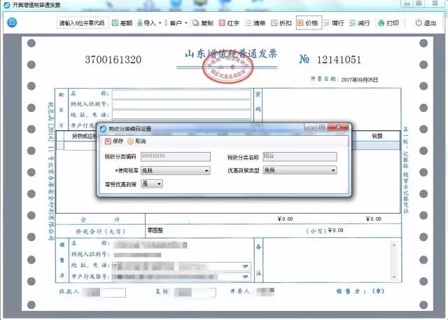 納稅人在發(fā)生上述行為,開具增值稅普通發(fā)票,,在設(shè)置商品編碼、選擇稅率時,應(yīng)勾選左下角“享受優(yōu)惠政策”,選擇“是”,并進一步選擇“不征稅”。發(fā)票開具完畢后,展示為下圖: