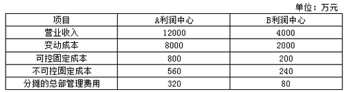 (1)財務部經理:首先對A、B兩個利潤中心的2016年度的業(yè)績進行評價,選用利潤中心的稅前營業(yè)利潤指標評價兩個利潤中心經理的管理能力。2016年度A、B兩家利潤中心的有關財務指標數據如下: