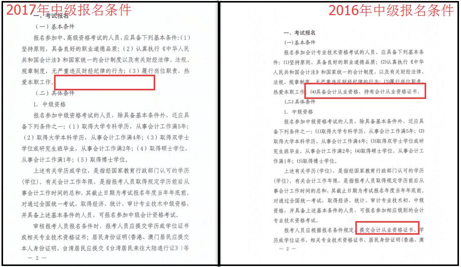 1. 2017全國中級(jí)報(bào)名條件vs2016全國中級(jí)報(bào)名條件