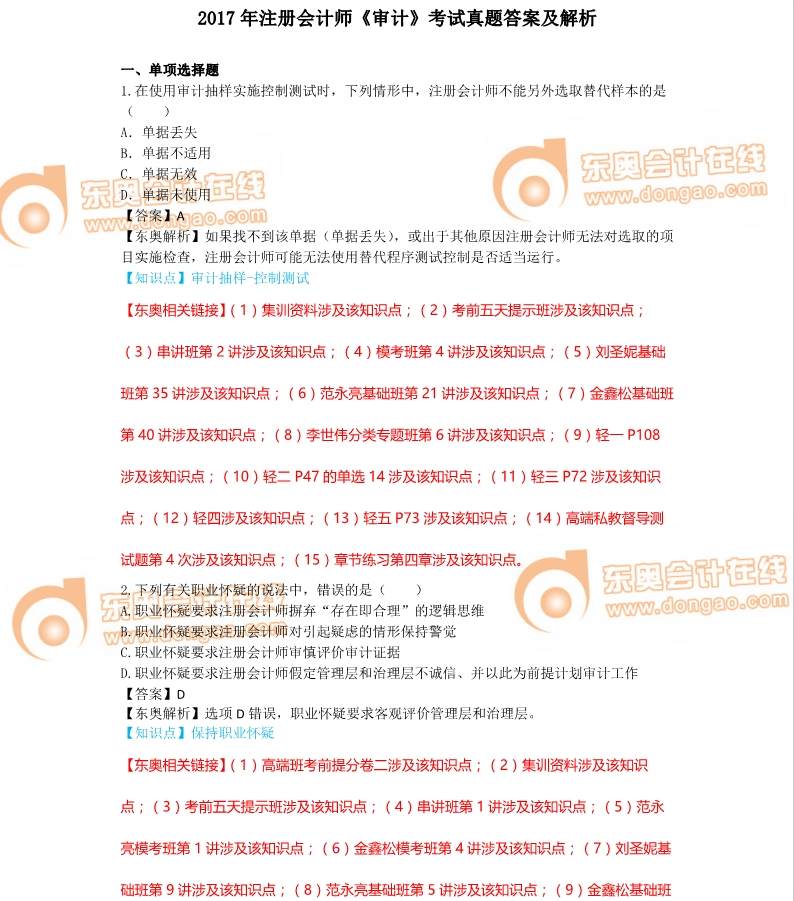 2017年注冊會計師《審計》考試已經(jīng)結(jié)束,大家都考的怎么樣呢?東奧小編將東奧會計在線論壇考生回憶的2017年注冊會計師真題及答案解析進行整理,詳細內(nèi)容如下: