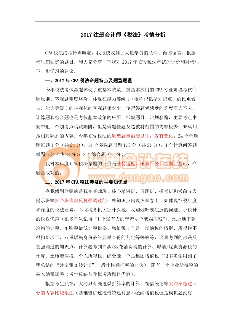 高清完整版點擊下載:2017注冊會計師《稅法》考情評析