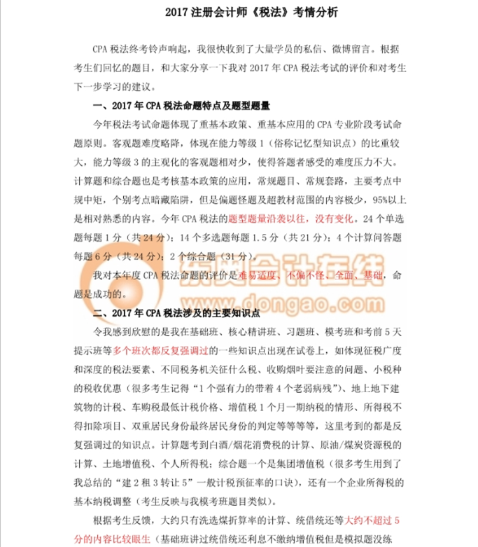 考后點評:東奧攜手劉穎解析2017注會稅法