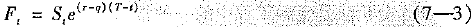 其中,q表示標的資產(chǎn)的紅利率,如外匯遠期合約中外幣的存款利率,股票的股票紅利,股指的紅利率等。該公式用于遠期外匯合約時,計算出的外匯遠期價格稱之為遠期匯率。