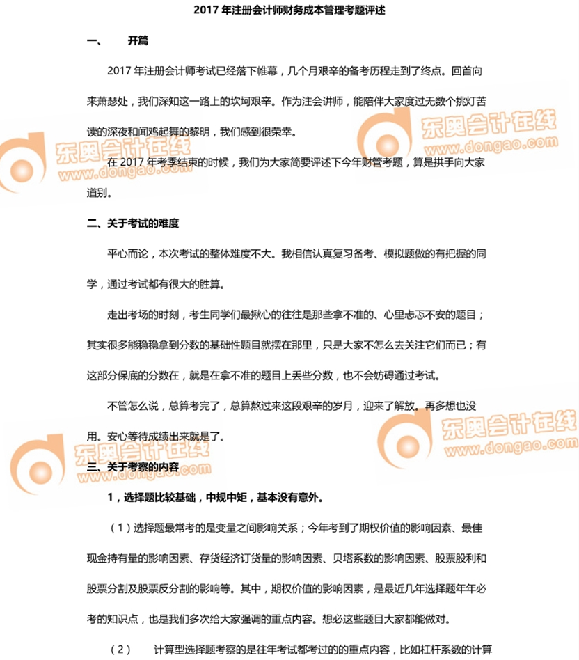 考后點(diǎn)評:東奧攜手鄭曉博解析2017注會財管