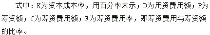 式中:K為資本成本率,用百分率表示;D為用資費用額;P為籌資額;f為籌資費用額;F為籌資費用率,即籌資費用與籌資額的比率。