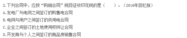 【解析】選項AB:對發(fā)電廠與電網(wǎng)之間、電網(wǎng)與電網(wǎng)之間簽訂的購售電合同按購銷合同征收印花稅。電網(wǎng)與用戶之間簽訂的供用電合同不屬于印花稅列舉征稅的憑證,不征印花稅。選項CD:土地使用權轉讓合同和商品房銷售合同按產權轉移書據(jù)稅目繳納印花稅。