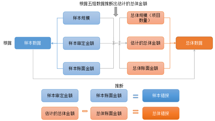 樣本平均錯報=(樣本賬面金額-樣本審定金額)÷樣本規(guī)模