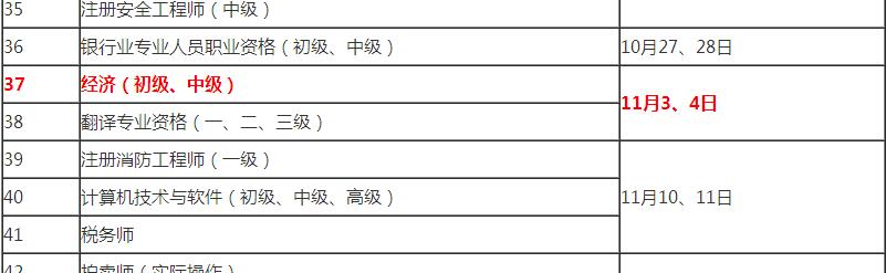 以下為經(jīng)濟(jì)師(初級、中級)考試時間截圖: