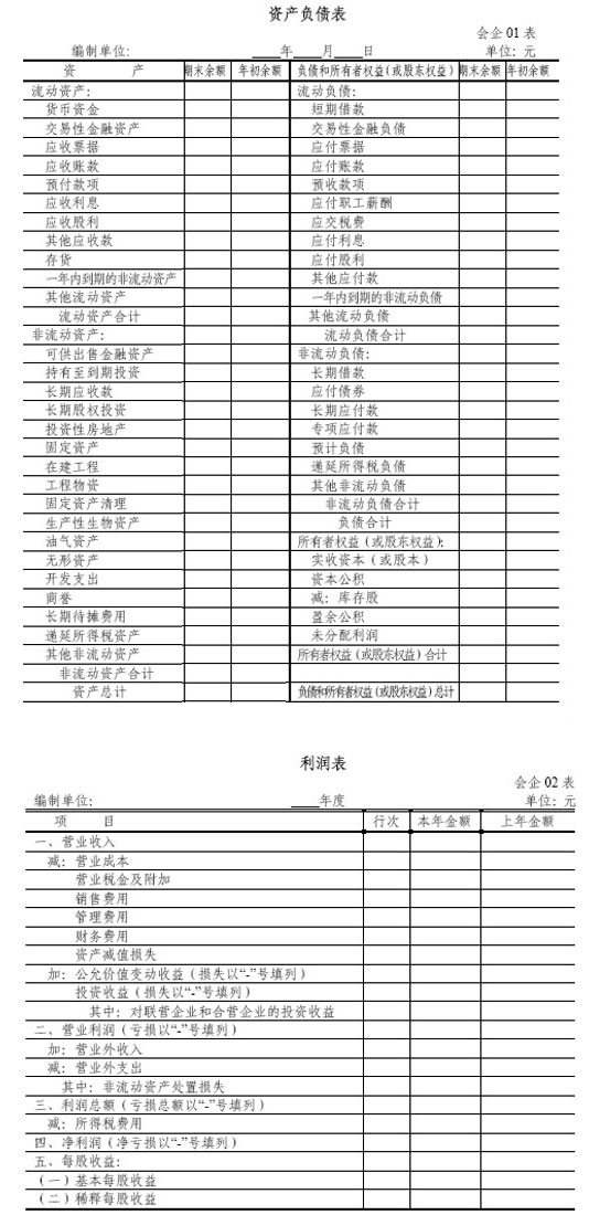 三、一般企業(yè)資產(chǎn)負(fù)債表、利潤(rùn)表和所有者權(quán)益變動(dòng)表格式