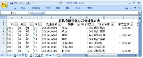 (2) 單擊“會(huì)計(jì)憑證表”工作表中的任意一個(gè)單元格。