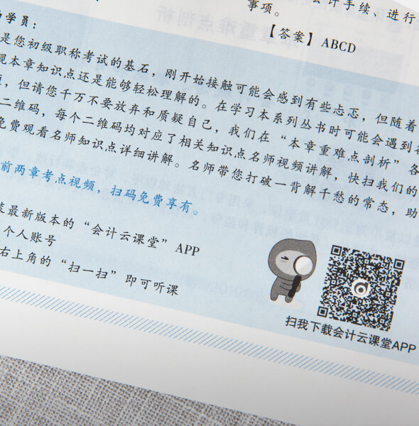 | 服務 | 24小時專業(yè)答疑 | 每本書配有30個免費答疑,當您提交問題后,會在24小時內得到專業(yè)的答復。 | 登錄”會計云課堂app“,點擊”我的——圖書激活“,輸入防偽標簽碼即可激活 |